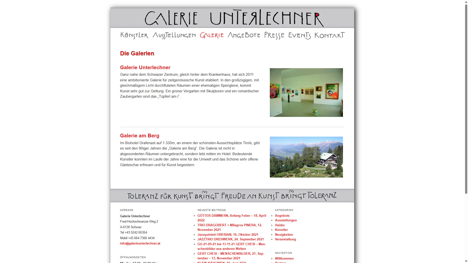 Webdesign für Galerie Unterlechner