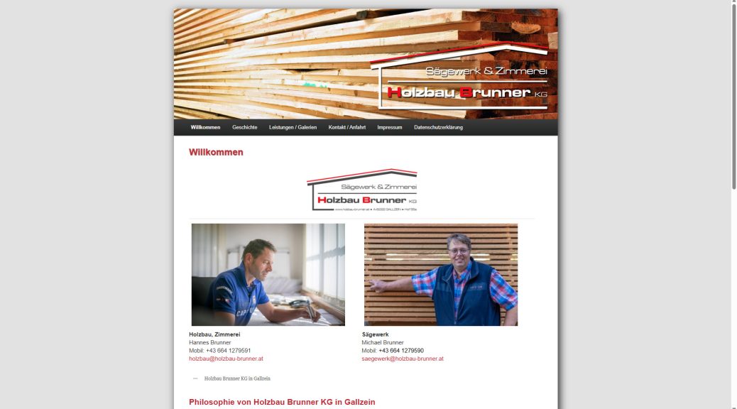 Eine einfache „Webvisitenkarte“ mit Anfahrtsplan für Holzbau und Sägewerk Brunner in Gallzein